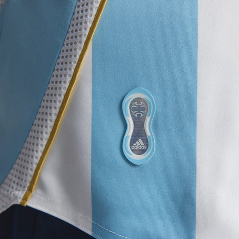 The Argentina Home Jersey 2006 Messi edition brings back the iconic design worn by Argentina's finest, featuring Messi's name and number. Crafted for true soccer enthusiasts, this jersey combines nostalgia with style, making it a must-have piece for fans. This product speaks to all vintage and retro lovers. The interlock fabric provides comfort and durability, while the regular fit offers a classic look. With adidas branding and the Argentina crest featuring on the jersey too, it helps you stay connected to the spirit of the game. Wear it with pride and show your support for one of soccer's greatest legends.