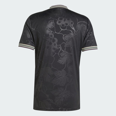 Raise a glass to your soccer heroes in a Juventus jersey that pays tribute to Piedmont's wine-making tradition. Standing out from black colors, an embroidered adidas Trefoil and classic club badge join subtle, vineyard-inspired graphics to produce an understated, elegant look. Created to keep fans comfortable and relaxed, this shirt features soft fabric and moisture-managing AEROREADY.